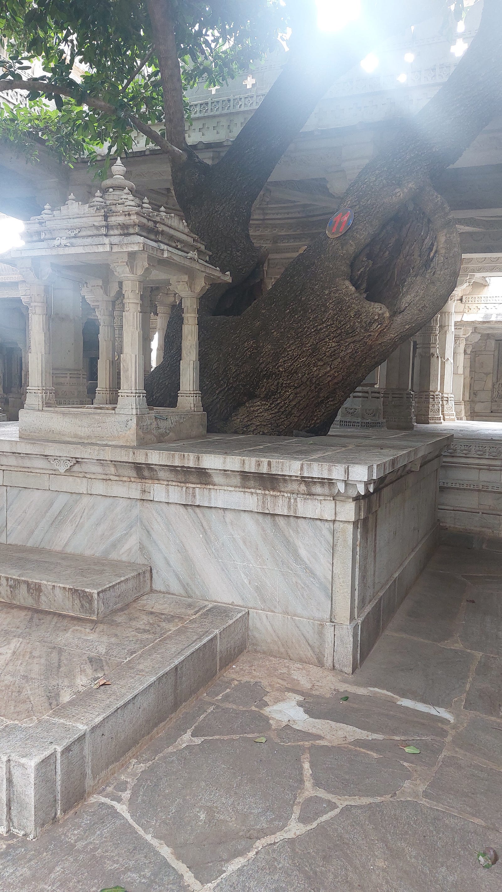 In the inner courtyard near the sanctum sanctorum, there is a Rayan tree (Manilkara Laxandra) which is believed to be 800 years old, beneath the shade of this tree are the footsteps or pagla of Bhagwan Adinatha or Rishabhadev. It is believed that this tree was planted by Sheth Dharna Shah, when he started the temple construction. Shree Aadinath Bhagwan has given his first sermon in Samavasaran under a Rayan tree and hence the tree is considered very sacred. Also, Rishabha dev attained Moksha or omniscience under Rayan tree.