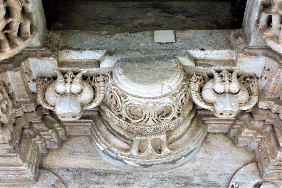 Outside the sanctum sanctorum, on three sides can be seen the stone sculpture of identical elephants. Astride the elephant is the mahout and behind him is seated the figure of Marudevi, the mother of Rishabhanatha. It is believed that Marudevi went on an elephant to Shatrunjai hills to see her son, and died on the back of the elephant on which she was seated and attained moksha.